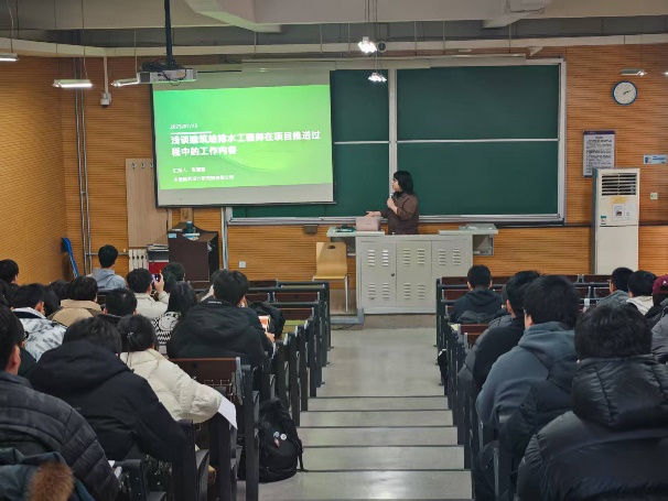 同日下午,邀请中国建筑设计研究有限公司的张璇蕾校友围绕“建筑给排水工程师在项目推进过程中的工作内容”,为学生分享了设计院的工作经验与职业发展建议。