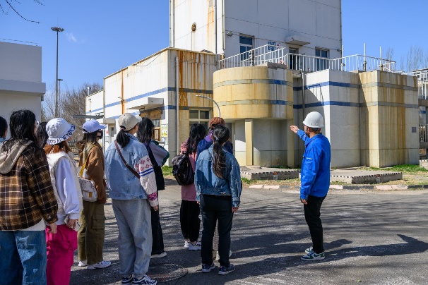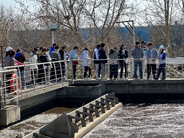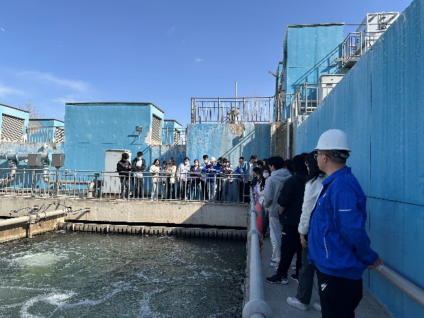 在杨琎、齐欣宇老师和企业相关工作人员的带领下,同学们依次参观了污水厂和再生水厂,现场学习污水处理的工艺流程,认真观摩和了解粗格栅、细格栅、沉淀池、曝气池等处理设施运行情况,通过将课本所学知识带入实践学习,加深了对专业知识的理解。