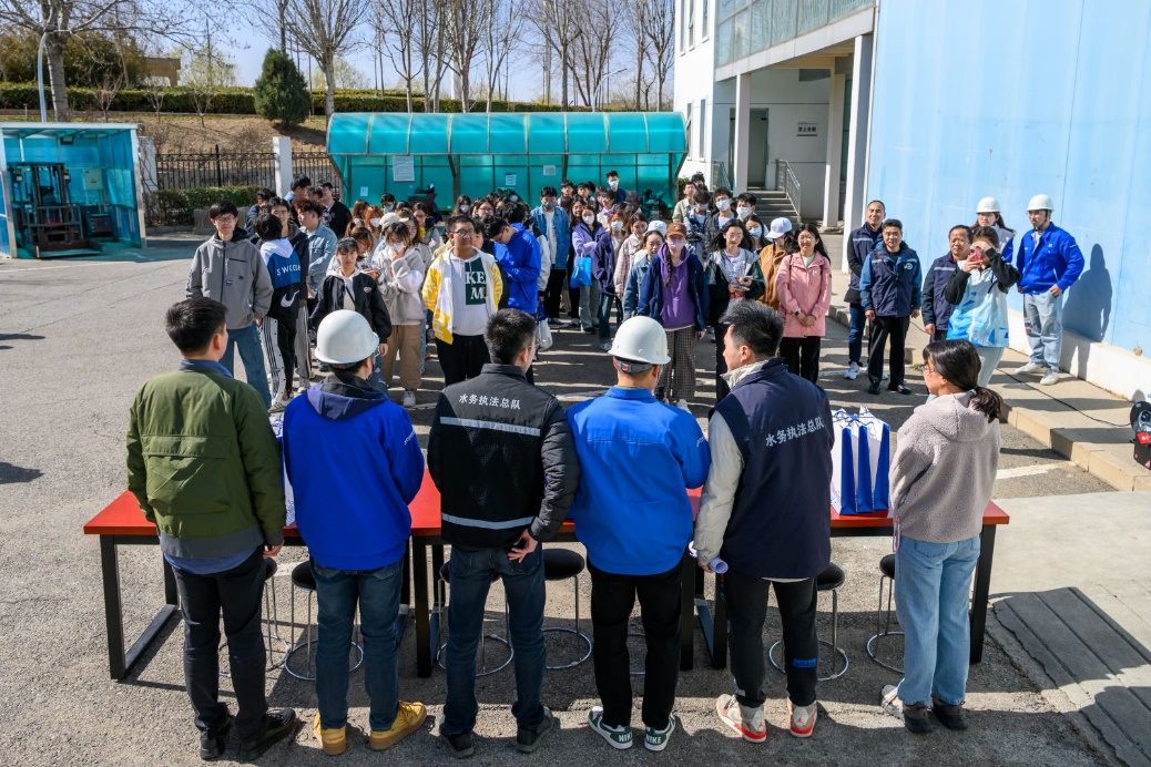 在实践过程中,北京市水务执法总队大兴分队工作人员围绕水环境、水资源、水生态、水安全、水经济、水文化等内容,为同学们普及《中华人民共和国水法》、《城镇排水与污水条例》、《北京市节水条例》等相关法律法规,为同学们讲解涉及用水问题中的典型案例,引导大家树立节约水资源、保护水环境的责任意识,增强水生态、水安全忧患意识。