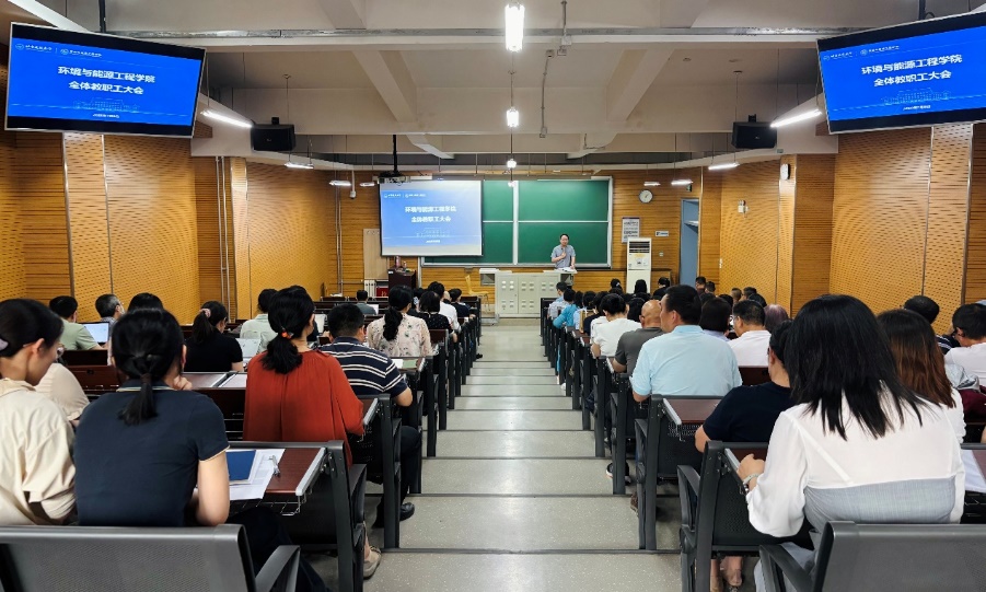 在学B205召开全院教职工大会,部署暑期安全稳定、师德师风建设、实验室管理工作及学院近期重点任务。学院领导班子及全体教职工参加会议。会议由学院党委书记冯宏岳主持。