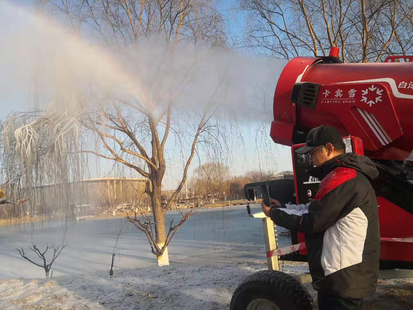 图2:王瑞祥教授、徐荣吉副教授带领团队进行造雪机整机室外性能测试
