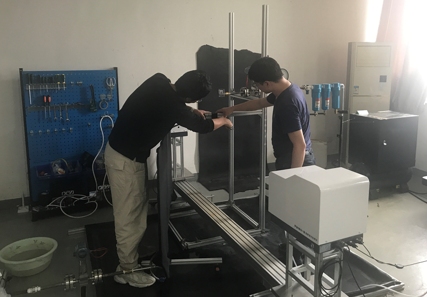 图3:青年教师吴海峰老师带领研究生搭建雾化部件性能试验台