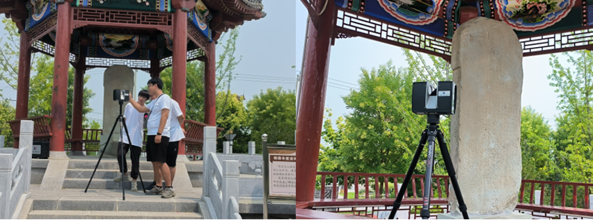此外,铜佛寺村现存明成化铜佛寺建造碑,成化甲辰年建,碑座缺失。碑长180厘米,宽78厘米,厚12厘米。碑文记述该寺明正统建设、成化重修情况,但碑文因年久风化而剥蚀消失,难以辨识。针对此,实践团成员通过实地调研,采用数字化扫描技术拟对碑刻文字进行智能化还原。