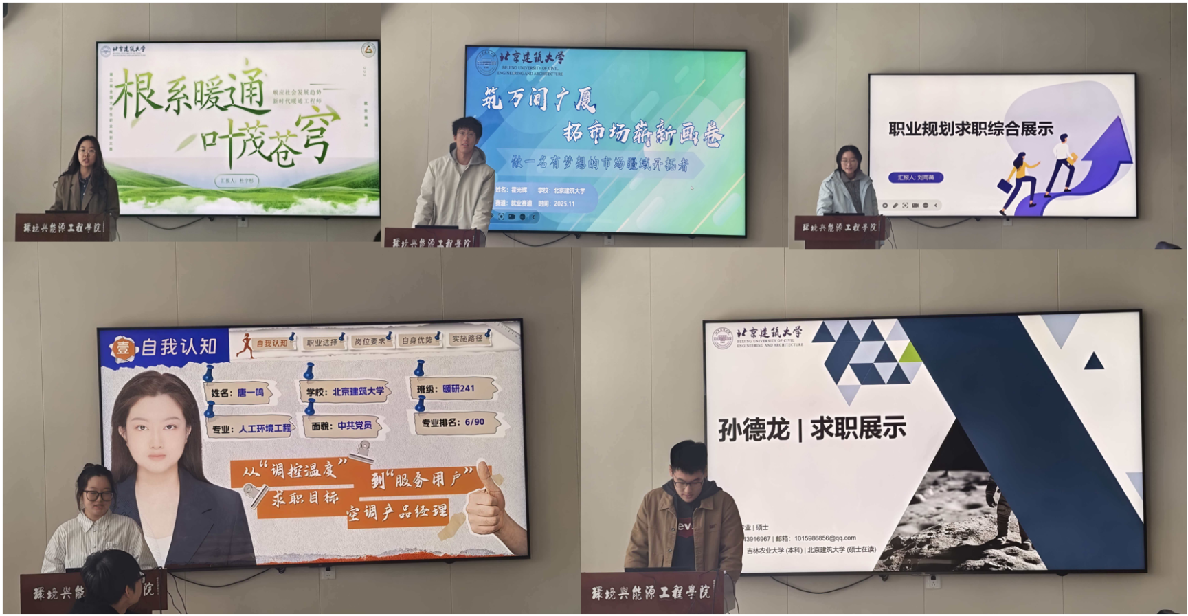 就业赛道聚焦学生职业发展与实践能力提升,共五名选手参加。参赛选手通过个人展示与现场答辩,系统呈现了求职准备与岗位认知。选手们凭借扎实的专业功底、丰富的实践经历和明确的职业定位,展现了环能学子优秀的综合素质和就业竞争力。