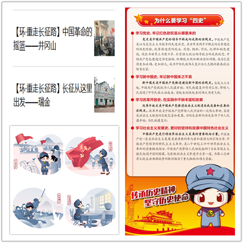学习“四史”是一场“精神上的长征”,学习“四史”、“网上重走长征路”,就是从历史学习中汲取经验和力量,坚定理想信念,矢志奋斗拼搏,凝聚思想共识,汇聚精神力量,让青年一代为国家改革发展事业和学校高质量发展建设贡献青春力量,书写无愧于时代、无愧于历史的华彩篇章。