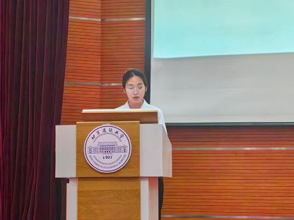 新生代表、环231郭思仪同学回顾了刚刚结束的新生军训,与大家分享了本次军训带给她的意志品质的提升以及未来四年的奋斗目标,为新生做出良好表率。