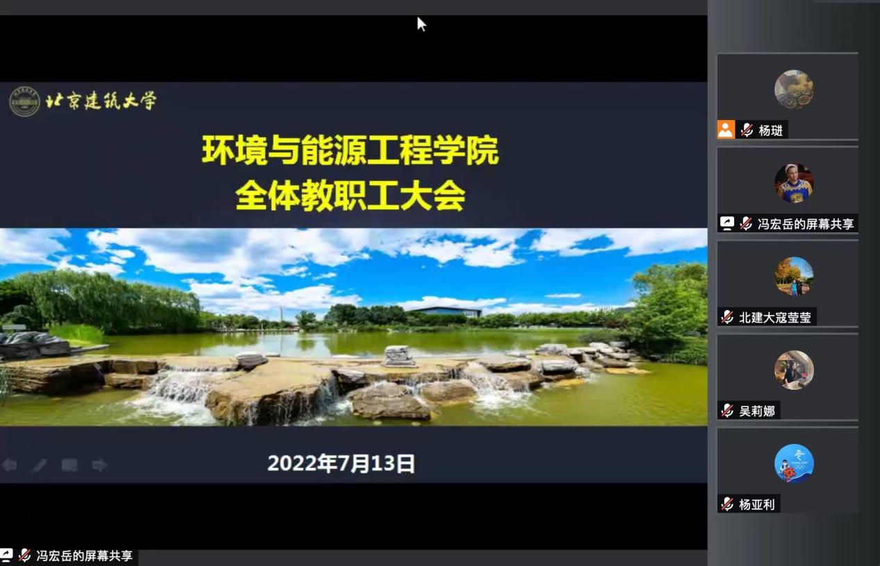院长李海燕对2022年半年来学院人才培养、科学研究、学科建设、专业建设、师资队伍建设、实验室管理等工作进行全面总结并对下一阶段提出工作要求,一是扎实做好安全稳定工作,切实做好疫情防控常态化条件下实验室安全管理工作和学生管理工作。她希望全体教师重视起来,认真梳理暑假留校学生情况,关心关注学生实验、研修室等方面存在的问题,做好学生安全教育工作,做好值班值守,保障暑假期间学校安全稳定。二是要高度重视教育教学工作,统一思想,凝聚共识,完成建环专业评估(认证)、审核式评估、国家级水环境教学示范中心验收工作,加强对课堂教学的关注,切实提高课堂教学质量和育人水平。三是希望全体教师利用暑假提升科研能力,主动学习新理念,积极谋划国家基金申报,围绕“双碳”目标,发挥环能专业优势,布局建设“双碳”集成式平台。她表示今年是“十四五”发展规划的关键一年,要抢抓机遇,创新发展,推动学院高质量内涵建设。