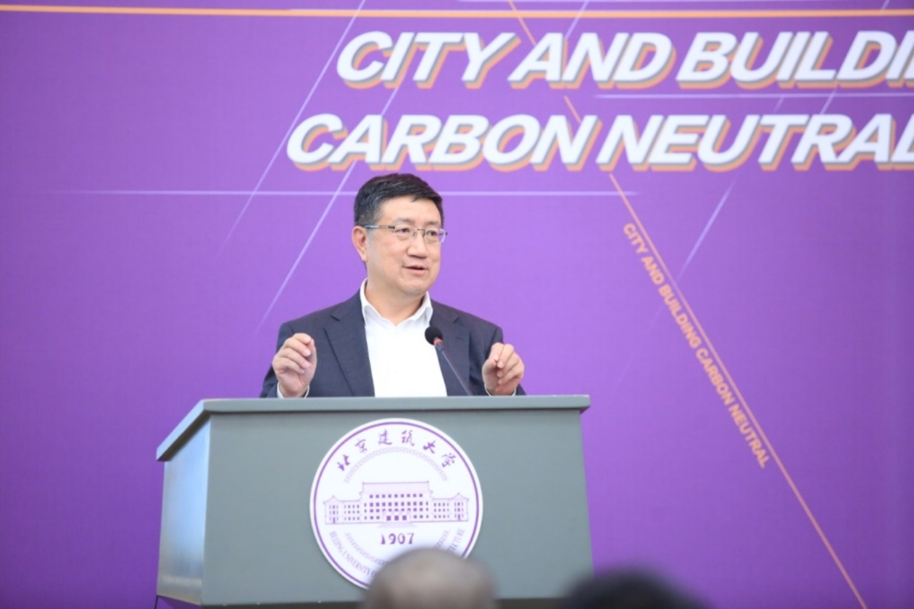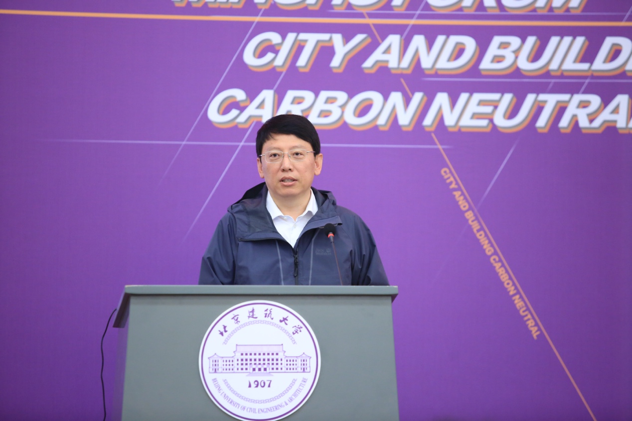 李俊奇代表学校致辞,他首先对各位专家、领导的到来表示诚挚欢迎和衷心感谢。他介绍了学校近年来在碳中和领域的积累和成绩,如2012年获批成立“北京应对气候变化研究和人才培养基地”,王随林教授团队相关研究成果荣获2014年度国家技术发明二等奖,郝晓地教授团队关于污水处理厂碳中和研究成果荣获教育部自然科学一等奖等。他指出,聚焦碳达峰和碳中和领域,学校于2020年发布了“面向未来城市的科技创新研究计划(2020-2035)”,提出五大领域三十余个研究方向。他鼓励广大教师和学生面向“双碳”目标,推动相关科技创新和技术发展,为绿色城市、低碳城市发展做出应有贡献。