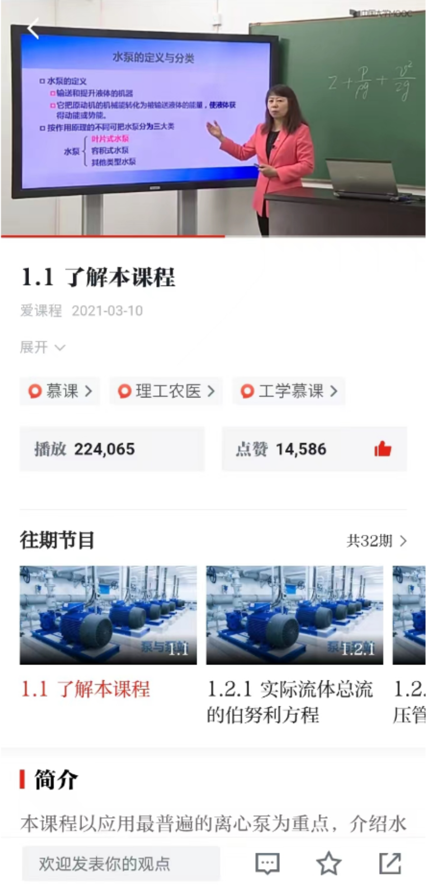 《泵与泵站》课程是全国给排水科学与工程专业的必修专业基础课程,也是北京高校优质本科课程。主要面向给排水科学与工程、环境工程等专业大三学生开设。《泵与泵站》慕课在学堂在线、中国大学MOOC、学习强国等多平台运行,可以作为土木、水利、生态、机电、采矿、石油、化工等相关专业本科和专科学生的选修课程,也可以作为相关专业工作人员继续教育和注册公用设备工程师执业资格考试的开放学习资源。