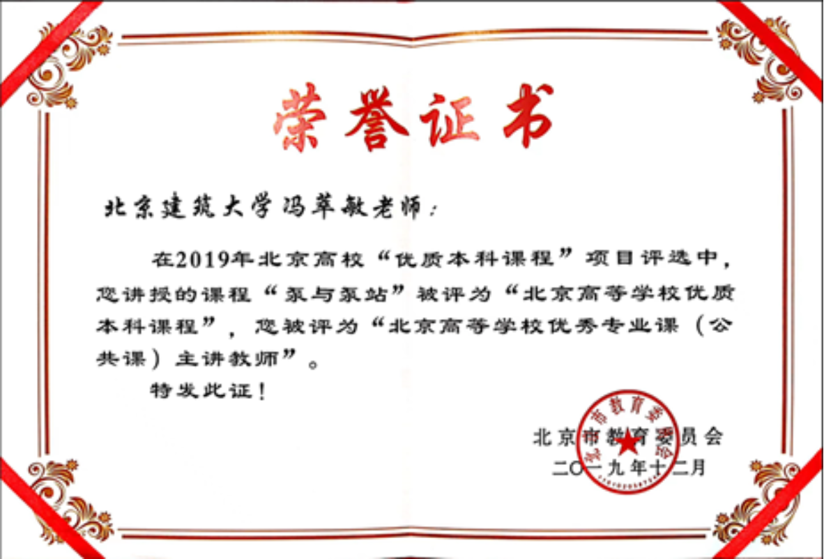 《泵与泵站》课程获评“北京高等学校优质本科课程”