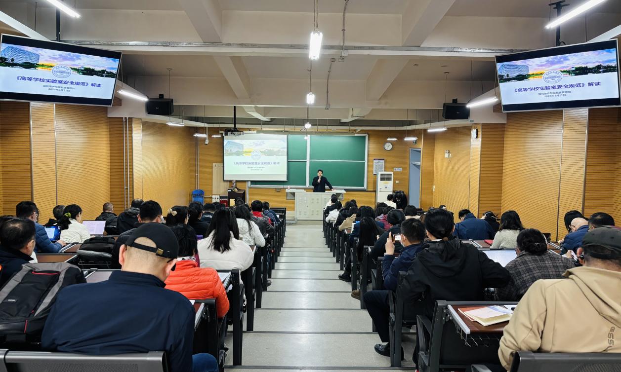 会上,焦驰宇做了实验室安全与管理规定专题培训。培训重点介绍了高校实验室安全管理制度体系、落实规范管控要求。他指出,现阶段学校建立了学校-二级单位-实验室责任体系,学校有规划有指导,二级单位有管理,实验室有文化,打破了“上热、中温、下凉”的状态。同时,他也对实验室安全管理工作提出要求:一是进一步完善安全检查制度,落实实验室安全检查工作,建立隐患台账并及时整改。二是加强教师、学生的安全培训教育,制定应急预案,加强应急演练。三是要求实验室负责人切实履行安全责任,坚持“安全第一、预防为主、综合治理”的方针,落实实验室及实验项目风险评估工作。