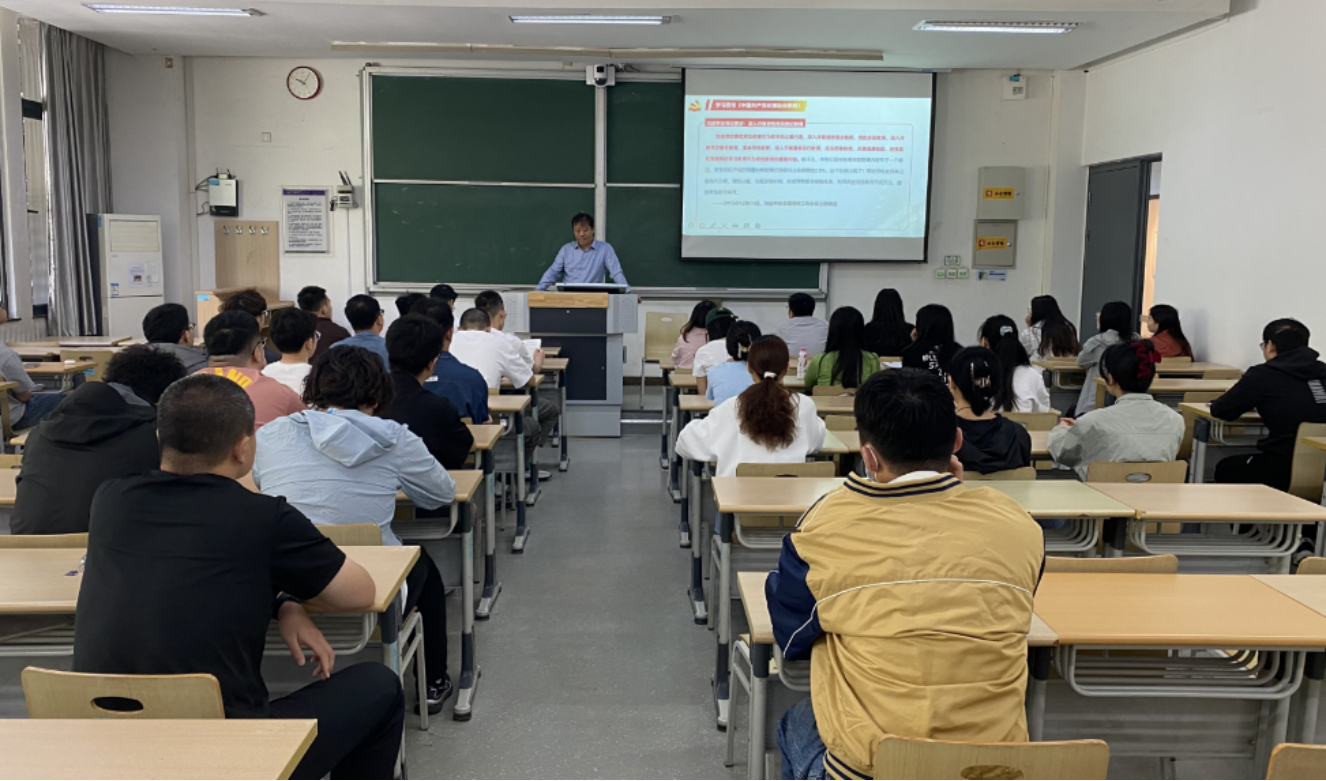 ,为暖研一、二、三学生党支部讲授党纪学习教育专题党课,对《中国共产党纪律处分条例》(以下简称:《条例》)主旨要义、总则、分则和附则等内容进行详细解读。会议由学院专职组织员赵亮主持。