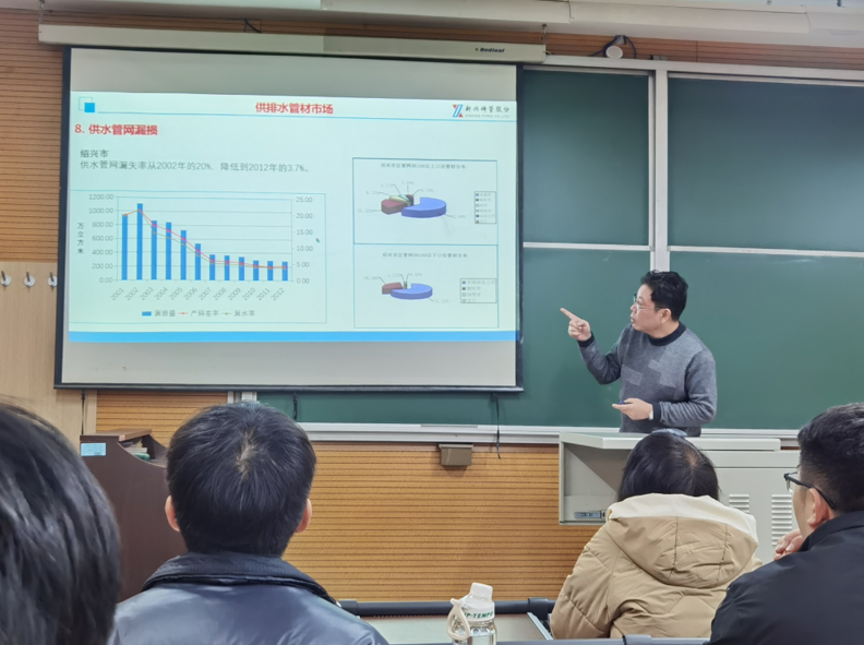 1月12日上午,新兴铸管股份有限公司技术总监李华成为同学们做了题为《球墨铸铁管道工程技术分析》的学术报告。报告从球墨铸铁管道的发展历史、类型特点、性能与技术指标,讲到系列应用案例及面临的问题,并和同学们做了深入的交流讨论,鼓励同学们在给排水管道发展与应用中不断创新、持续探索,做给排水事业发展的推动者。水202班的班长徐健代表全体同学对校内外老师的辛勤付出表示感谢,冯萃敏老师对水20级4个班同学在最后一个教学日认真听报告、积极讨论、按时完成课堂练习提出表扬。