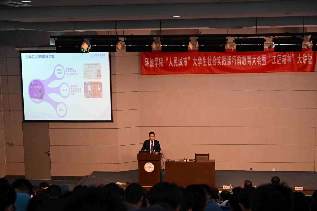 市政研08级校友,首创环保集团生态环境事业群解决方案部经理、运营管理部副经理。他以“环保征程筑梦想百战归来再出发”为题,从学习之旅与职业之路、目前的环保现状与未来趋势、成长规划与专业素养、感恩母校与未来期待四个方面进行了分享。他以自身3次求学最终成功进入清华大学攻读博士学位的经历勉励大家要敢于追梦、坚持不放弃。同时也要对自己的人生有清晰规划,利用好大学时光,立足专业知识,学会触类旁通、拓宽视野,在实践中将所学知识融会贯通,不断积累经验,为未来求职打下坚实基础。