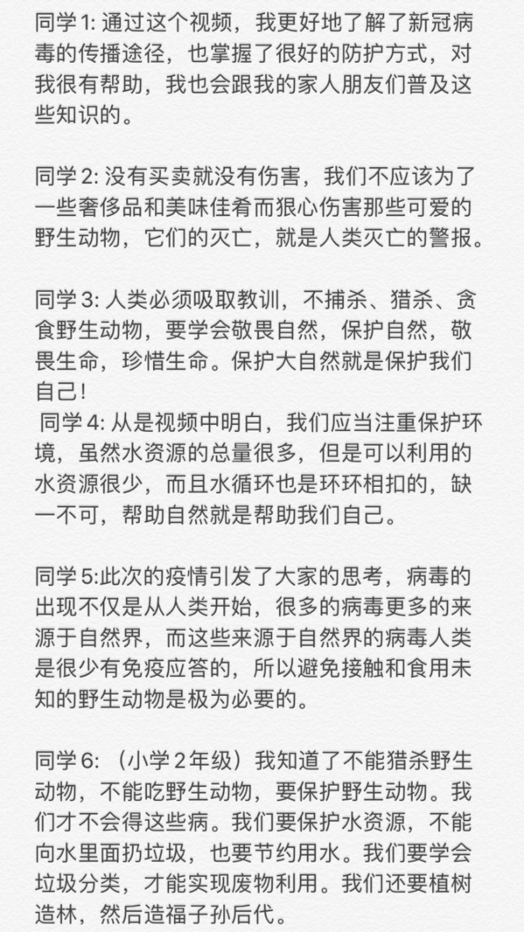 杨亚利老师的带领下组建“绿色环保我先行”宣讲队,开展线上宣讲活动,积极倡导科学健康文明生活理念和生活方式,宣传野生动物保护知识,引导基层群众革除陋习不吃野味,提高公众生态环保意识。
