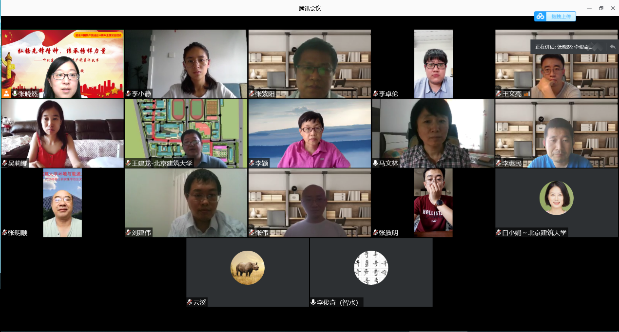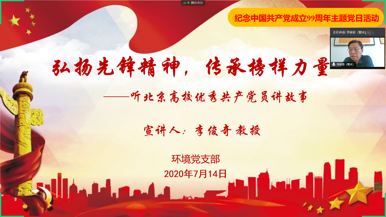2020年7月14日,为庆祝中国共产党成立99周年,根据市委组织部以及学校相关通知部署,环境工程、环境科学党支部在线举办“弘扬先锋精神,传承榜样力量——听北京高校优秀共产党员讲故事”主题交流学习活动。七一期间,北京市委教工委表彰了150名北京高校优秀共产党党员,环境工程党支部李俊奇老师光荣入选。本次活动邀请了李俊奇老师为支部党员老师们做经验分享。