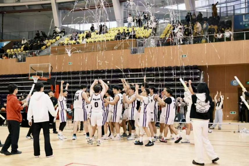 当终场哨声响起,75:63的比分定格在记分牌上,环能男篮的队员们眼含热泪相拥而泣,替补队员们飞奔入场与主力紧紧相拥。场边的环能学子齐声高喊“环能冠军!”,热烈的呐喊响彻整个赛场。