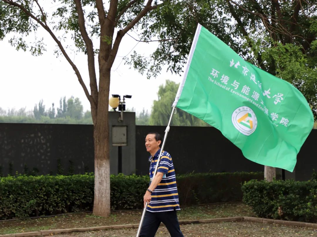 在健步走途中,大家意气风发、甩臂迈步,有说有笑,和乐融融,一边欣赏校园美景,一边享受健步走带来的轻松活力。老师们还积极的和环宝儿合影。