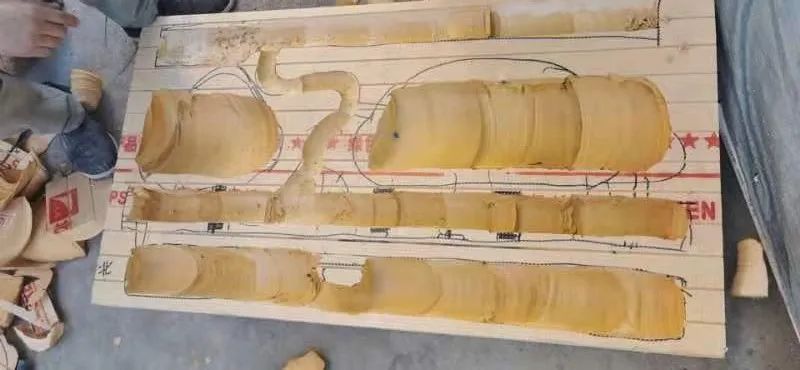 经过多次讨论后,团队开始动工制作。挤塑板虽具备抗压强度高、抗冲击力强、防水效果好,方便携带等优点,但是手工加工难以保持表明平滑,且由于加工耗时较多,状态难以稳定,因此十分影响加工效果。