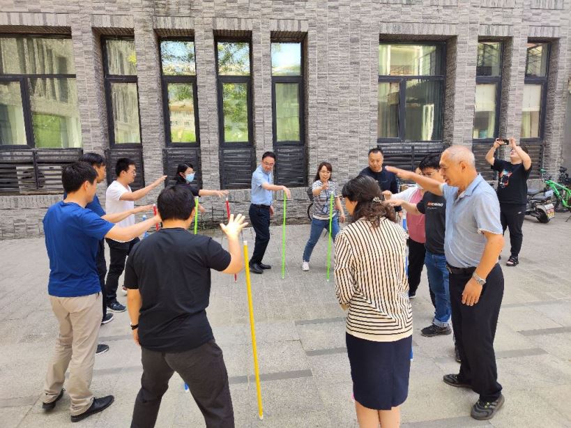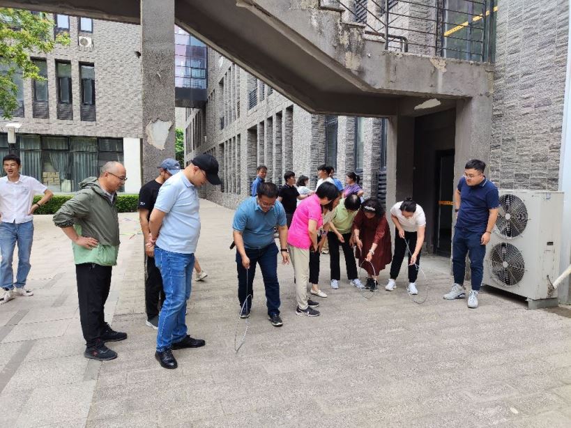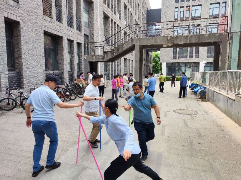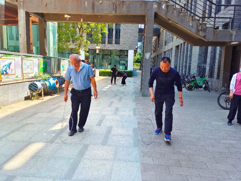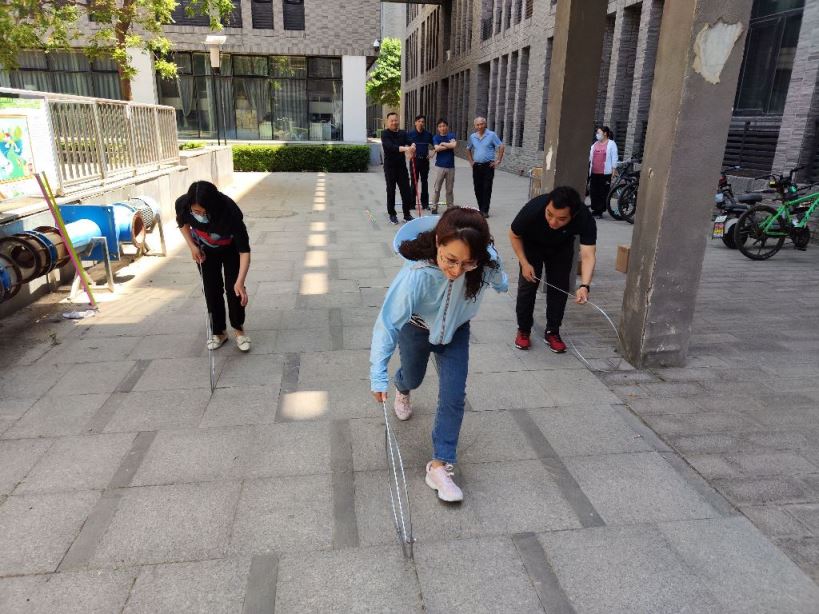 分工会在学院楼北侧的阴凉区域组织开展了丰富有趣的趣味活动。本次活动以“不倒森林”、“滚铁圈”为形式,精心设计活动细则,突出团队协作和友好竞技,吸引广大教职工积极参与到日常健身活动中。