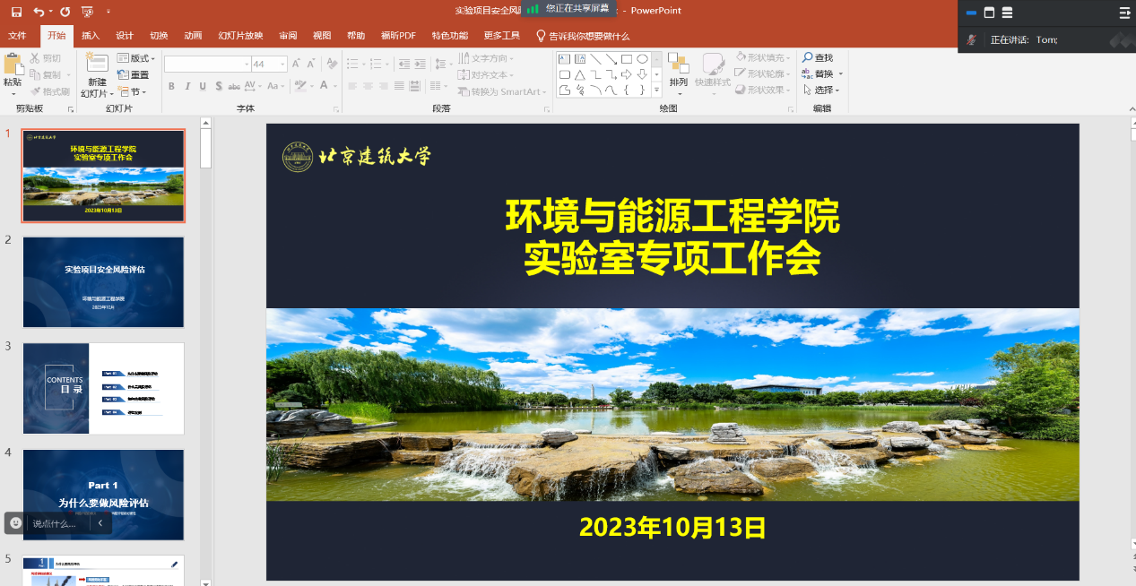 随后,学院实验室安全管理员穆小让对全体实验教辅人员进行了《实验项目安全风险评估》培训,主要从开展风险评估的必要性、流程、案例分析等方面进行了介绍。