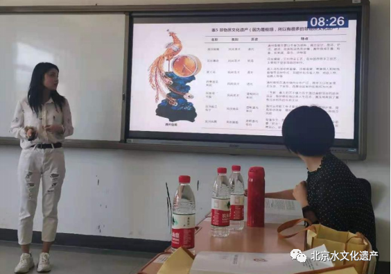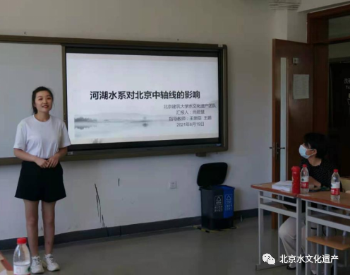 在下午的分会场中,李晓玉和尚君慧在分会场(二)分别以“北京通州水文化遗产特征及保护”和“河湖水系对北京中轴线的影响”为题做了非常精彩的的汇报发言。硕士研究生李晓玉通过对通州水文化遗产现状的详细梳理,总结出了通州水文化遗产的分布特点和价值特点,又基于通州水文化遗产现状及特点,总结出了目前保护的欠缺之处,同时提出了相关的保护方法。硕士研究生尚君慧从历史的角度出发探究河湖水系分别在金、元、明、清、民国和现代对北京中轴线形成和发展的影响,由此总结出了北京中轴线河湖水系具有与城墙相比的相对完整性、延展性和影响城市肌理的三大地域特征,又以元代白浮泉到瓮山泊开凿的“C字形引水线路”、故宫排水和团城集雨节水为例探究了与中轴线相关河湖水系的历史价值、文化价值与科技价值,最后提出在北京中轴线文化遗产保护过程中,应当重视河湖水系、水文化与水文化遗产的价值,希望将其纳入中轴线申遗内容中,并提出具体的保护措施,以完善北京中轴线申遗体系。