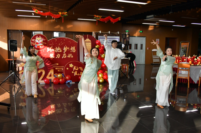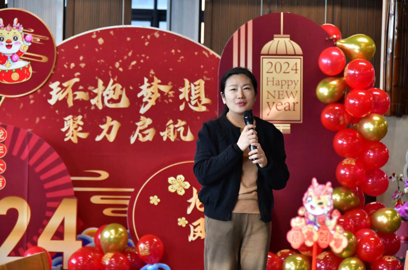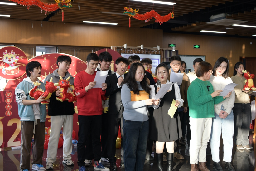 在大兴校区臻园三层举办“环抱梦想 聚力启航”——2024年新春团拜会,党委常委、副校长杨建伟,学院领导班子,部分兄弟单位嘉宾和学院全体教职工欢聚一堂,喜迎新春,畅谈发展,展望未来,欢声笑语间洋溢着喜庆祥和的节日氛围。