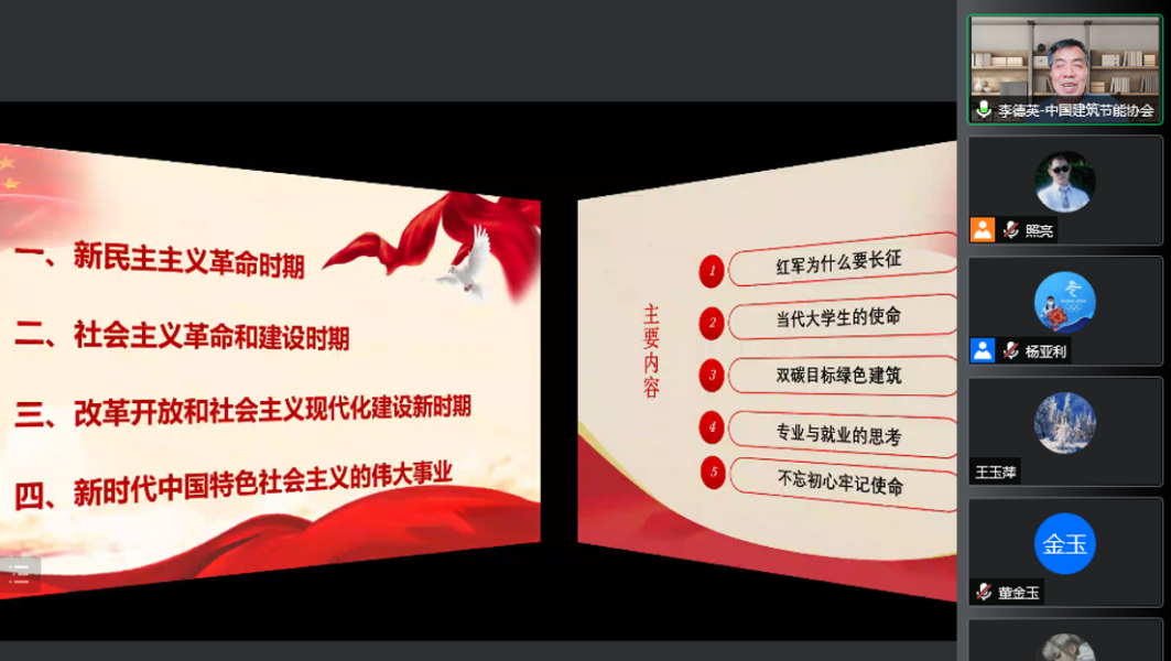 李德英教授作了题为《中国共产党的光辉奋斗历程》专题报告,围绕中国共产党发展的“四个阶段”,重点阐释了新时代大学生党员的责任和使命,介绍了专业行业发展形势,号召广大学生党员用理论学习“补钙壮骨”,用所学专业服务国家“双碳”战略。