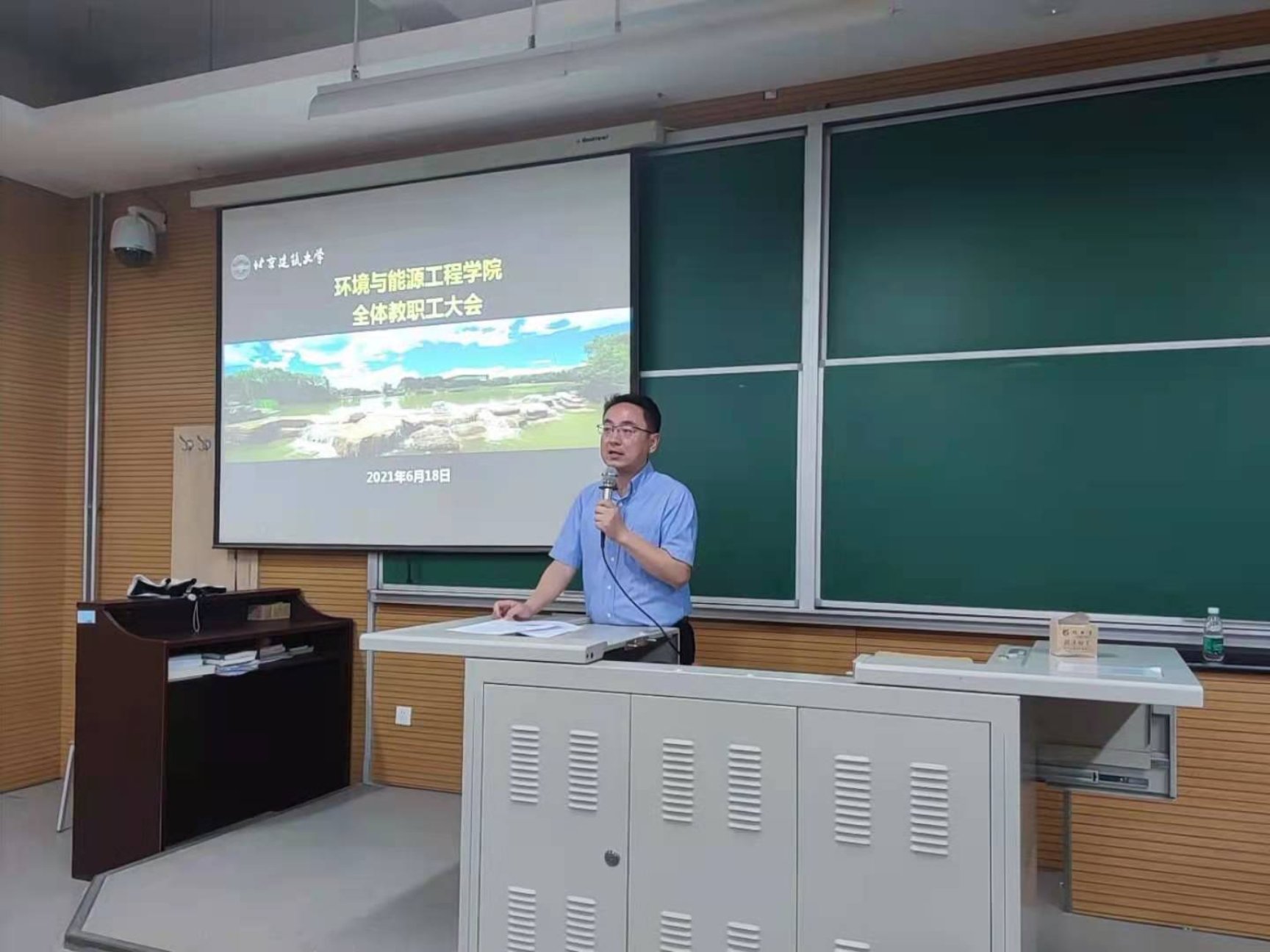 冯宏岳通报了近期工作。一是传达防汛工作会及学校安全稳定工作会议相关要求。他要求全体师生做好安全防范工作,做好危化品集中管理,实验人员和学生要加强安全实验意识,提前做好24小时运行设备的报备及检查工作。二是持续做好疫情防控常态化工作,提倡“非必要不出京”。三是通报学院“三优一先”及工会先进个人评选结果及相关学校会议精神。希望全院教师以饱满的热情和良好的精神风貌迎接建党100周年。