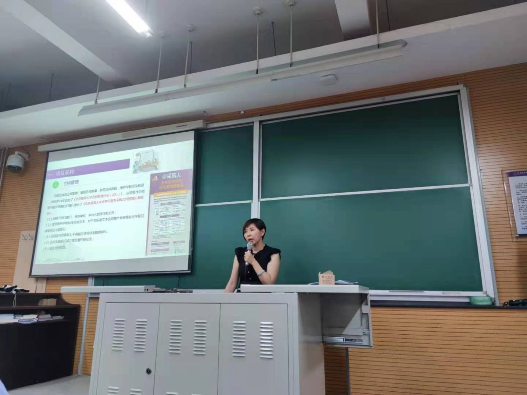 李莹做了题为《项目采购和资产管理“的流程与风险防控》的专题培训。她详细介绍了项目采购中常见问题、采购步骤及采购方式、采购流合同管理及风险防控方式,资产管理中货物验收办法、资产上账、资产处置及风险防控方式。她指出,合同的质量体现了学校管理水平,她希望老师们遵守学校相关管理办法,继续本着认真负责的态度,切实做好工作,积极维护学校的权益。