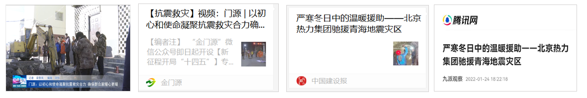 在本次驰援中,与北京市热力集团联合研发声波检测仪和管道泄漏在线监测器发挥了重要作用,同时,基于人工大数据的供热管网运行状况与安全智能诊断报警关键技术,在紧急驰援青海地震灾区及震后的冻土层融化对供热管道的次生灾害评估方面起到了极大的作用,得到了当地政府、青海省住建厅和住建部的肯定和好评,并在青海门源县电视台、中国建设报和北京热力集团网站等媒体陆续进行了报道。