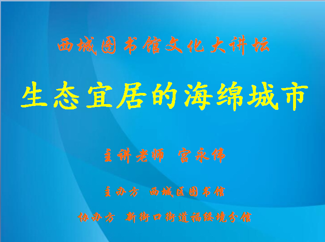 链接:西城图书馆文化大讲坛 | 生态宜居的海绵城市//mp.weixin.qq.com/s?__biz="MzA3MzU0ODgzOA==&mid=2652080890&idx=1&sn=aba74dd6fadf83c6a72fae10044650a2&chksm=84ea7fb3b39df6a5385202a579f2d6e8292209351f6eed159a7105445eb166f73fec7dc1c124&mpshare="1&scene=2&srcid=0430LUpgGcsuOEh2t72xaHpj&sharer_sharetime=1651333431662&sharer_shareid=a61b99f5f71beb96532060a6e95dab7a#rd
