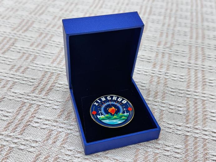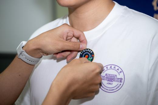 环能学子自主设计了精美的星火训练营专属徽章,徽章中的“XINGHUO”拼音即“星火”点明主题。深蓝色的背景寓意着浩瀚的星空,也是学海的象征。齿轮象征着专业属性与工业技术,契合低端影视