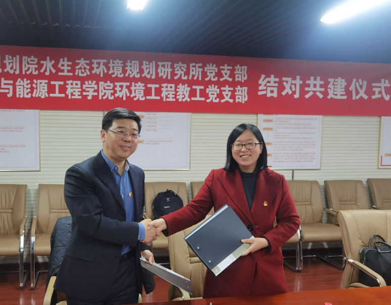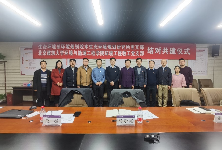 环境工程教工党支部与生态环境部环境规划院水生态环境规划研究所党支部结对共建仪式在北建大举行。水生态环境规划研究所副所长、支部书记赵越,纪检委员马乐宽,北建大科发院常务副院长李俊奇、成果转化与科技合作办公室副主任薛重华,低端影视